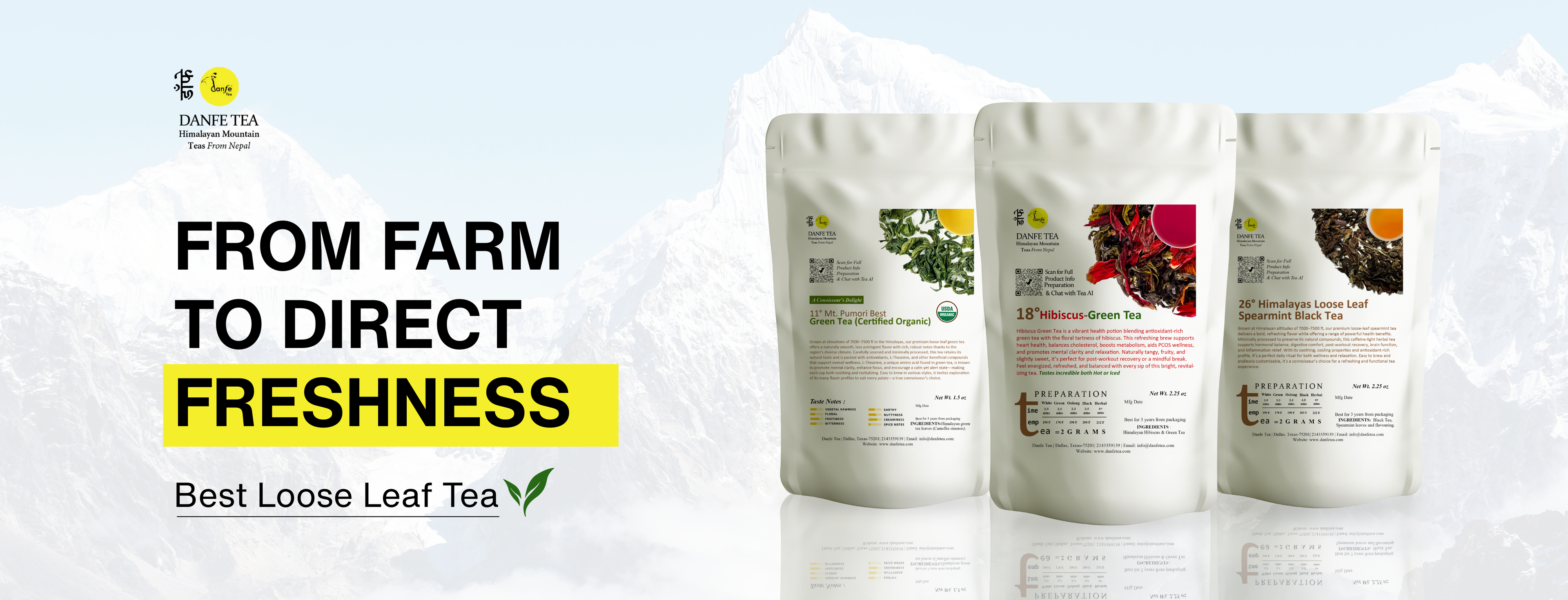 Shop Danfe Tea's premium Himalayan loose-leaf teas directly at www.DanfeTea.com with convenient nationwide shipping across the United States. Orders ship within 1-2 business days, bringing authentic Nepal tea straight to your door.